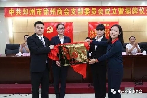 经八路街道党工委组织委员胡志爽宣读党支部成立批文,经八路街道党工委书记李华和郑州市徐州商会党支部书记王铁勇为党支部揭牌,经八路街道“两新”综合经济党委副书记潘力潘力为党支部赠送党建书籍。