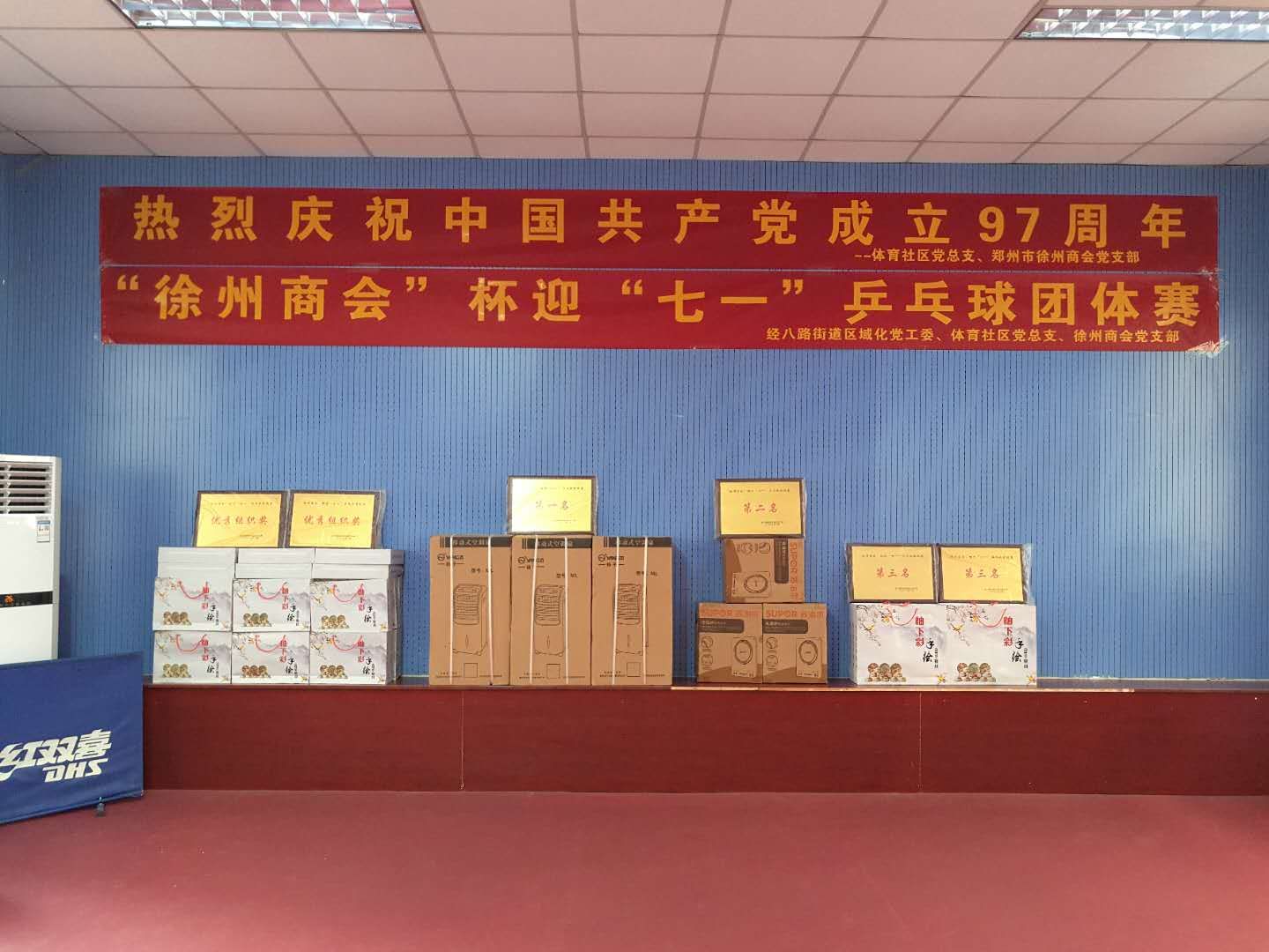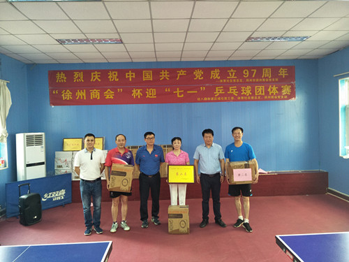 为庆祝中国共产党成立97周年,激发广大党员强身健体、拼搏争先、奋发有为的干事创业热情,体育社区党总支联手徐州商会党支部共同举办“党建联盟迎七一·乒出精彩博干劲”为主题的乒乓球团体交流赛。经八路街道党工委书记李华、司法所所长张婷婷、徐州商会会长徐伟及徐州商会党支部书记王铁勇出席开幕式并讲话。