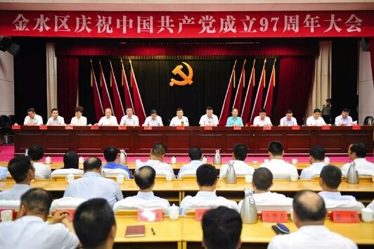 本次会议由金水区区长魏东同志主持,区委副书记李伟革同志宣读表彰决定,与会领导为先进基层党组织、优秀共产党员和优秀党务工作者代表颁发了奖牌和荣誉证书。全体参会党员重温了入党誓词,最后金水区委书记陈宏伟同志发表讲话,本次大会圆满结束。