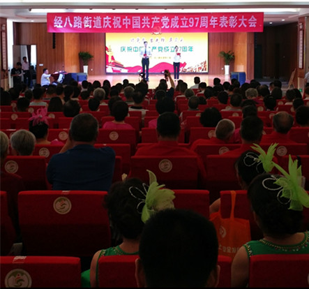 6月28号下午,郑州市金水区经八路街道庆祝中国共产党成立97周年表彰大会在黄河路一小礼堂隆重举行,经八路街道主要领导,各社区党组织书记,以及受表彰的先进基层党组织、优秀共产党员和优秀党务工作者代表等参加本次会议。