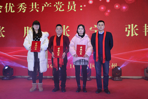会上进行了新当选的4名副会长单位、3名常务理事单位的授牌仪式,并对2018年度商会的先进个人、优秀共产党员进行了表彰。