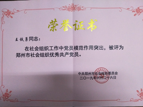 会上,袁杰宣读了《中共郑州市社会组织委员会关于表彰社会组织优秀共产党员、优秀党务工作者和先进党组织的通报》,郑州市徐州商会党支部被授予“郑州市社会组织先进党组织”称号,党支部书记王铁勇同志被授予“优秀共产党员”称号。