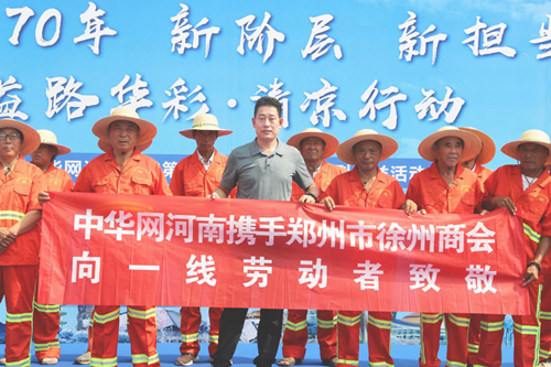 此次公益活动,由我会7月份轮值领导、常务理事张晓帅代表参加,他表示,郑州市徐州商会业务之一就是弘扬传统美德,投身慈善事业。此次中华网河南频道“益路华彩·清凉行动”系列公益活动完全符合商会的核心价值观。作为联接企业与社会的桥梁,我会理应贡献出自己的一份力量,向坚守在城市一线的劳动者道一声辛苦,送一份清凉。愿这份小小心意,能够给辛苦在平凡岗位上的他们带去夏日里最清凉的问候!