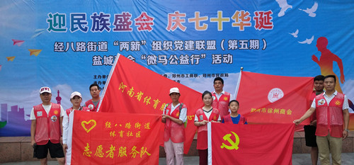 2019年7月26日上午,为庆祝建国70周年,迎接第十一届全国少数民族运动会在郑州市的顺利召开,营造文明、有序的市容环境,增强广大党员、群众的环保意识和身体素质,加强党组织间的沟通与交流,由郑州市经八路街道党工委主办的“迎民族盛会 庆七十华诞”微马公益行活动在郑州举行。本次活动由郑州市工商联秘书长李翔、郑州市民管办副主任刘倩、经八路街道党工委副书记冯燕等领导及上百名志愿者参与。我会志愿者参加了此次活动。