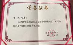12月27日,郑州市社会组织管理工作表彰会议召开,郑州市徐州商会被郑州市民政局评为“2021年度郑州市社会组织先进单位”,执行会长李超同志被评为“2021年度郑州市社会组织优秀工作者”。