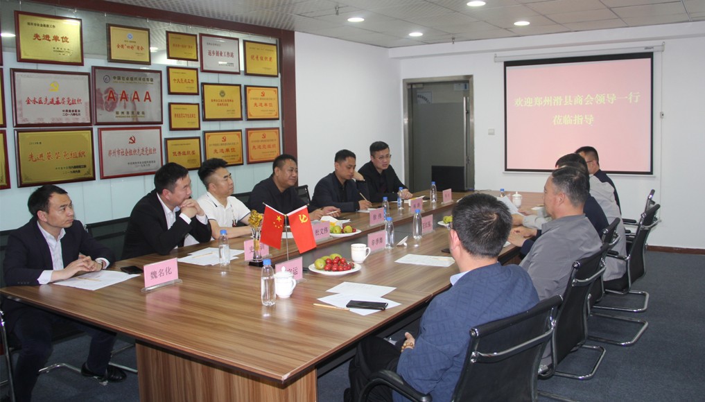 4月8日下午,郑州滑县商会会长王红强、顾问陈玉清、秘书长辛季舞、党支部书记赵俊强、轮值副会长郭宝运等一行莅临我会参观交流;我会会长徐伟,监事长杜文伟,支部副书记、副会长杨涛,执行秘书长史德训,副秘书长韩永、魏名化等参加了座谈交流。