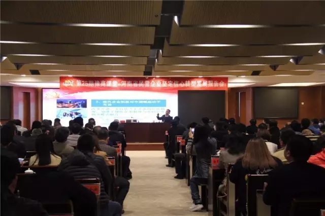 杨京伟在主持报告会时说,前不久闭幕的全国“两会”提出了今年我国国内生产总值增长6.5%的预期目标。会议强调以创新引领实体经济转型升级,深入实施创新驱动发展战略,推动实体经济优化结构,提升科技创新能力,加快培育壮大新兴产业,大力改造提升传统产业,持续推进大众创业、万众创新,大力弘扬工匠精神,全面提升质量水平;坚持权利平等、机会平等、规则平等,更好激发非公有制经济活力;加强产权保护制度建设,激发和保护企业家精神。这些都为民营经济特别是实体经济转型发展提供了新的机遇和空间。他强调,广大民营企业要准确把握我国经济发展大势,坚定发展信心,提升自身综合素质,完善企业经营管理制度,发挥企业家才能,增强企业内在活力和创造力,不断提高质量、效益和竞争力,推动企业不断取得更新更好发展。全省各级工商联和商会组织、民营企业要认真学习贯彻全国“两会”精神,认真贯彻落实十八届六中全会精神和省委十届二次全会精神,省委书记谢伏瞻在省政协十一届五次会议经济界委员联组会上的重要讲话精神,全哲洙书记来河南调研 “万企帮万村”精准扶贫情况时的重要讲话精神以及全省统战工作会议和省工商联十一届六次执委会议精神,推动非公有制经济转型升级、提质增效。要围绕“亲”“清”要求,落实省纪委、省工商联印发的《河南省构建新型政商关系暂行办法》,推动构建新型政商关系,着力促进非公有制经济健康发展和非公有制经济人士健康成长,增强非公有制经济在区域经济中的支撑作用。要按照省十次党代会提出的打好“四张牌”,建设经济强省,打造 “三个高地”,实现 “三大提升”的要求, 搞好产业结构优化升级、创新驱动发展,为决胜全面小康,让中原更加出彩,做出新的更大贡献。